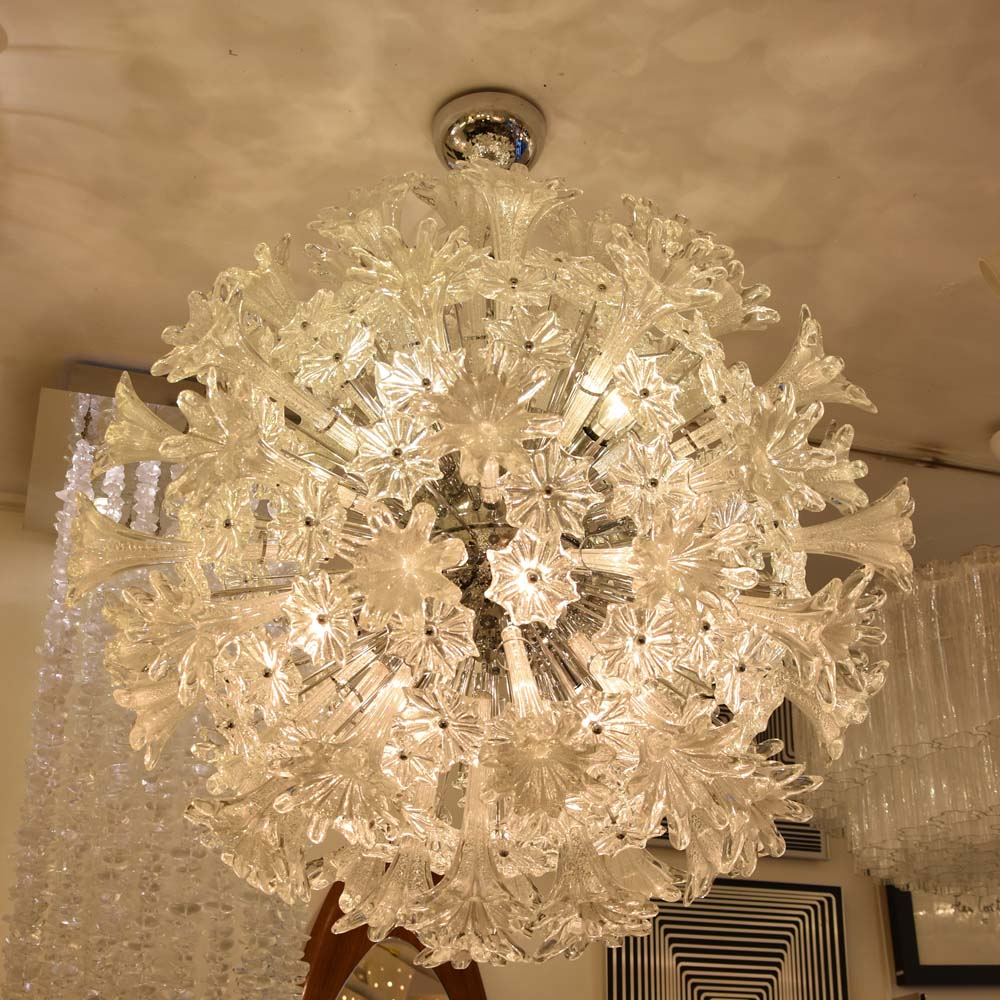 Venini Esprit clear and silver glass ceiling light, hand blown silver and clear submerso glass components on chromed steel structure. Made in Italy.