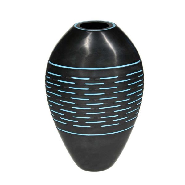 A unique art vase, blown glass encased in turquoise and black outside, Battuto technique by Andrea Zilio for Cenedese