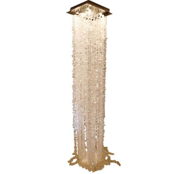 A outstanding Murano glass chandelier, strings of blown stone shaped glass clear crystals, 4 spot light bulbs. Made in Italy