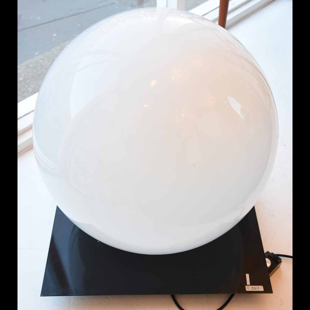 “Micol” Table Lamp by Sergio Mazza and Giuliana Gramigna for Quattrifolio Large white glass sphere on black square metal base.