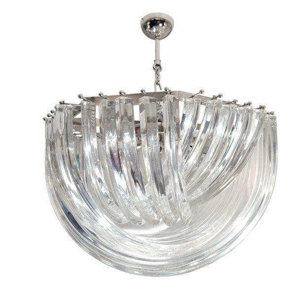 A great ceiling light. ‘loops ‘ curved clear blown Venetian glass components on a steel chromed hand made structure.