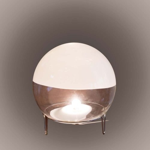 A table lamp with original double brown and while perspex shades on raisin and chromed base by Romeo Rega. Made in Italy