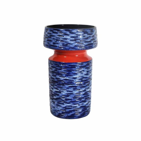 Ceramic vase with red stripe tones of blue. Uberlacker Ceramic