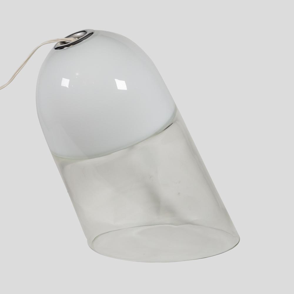 A white and clear submerso blown glass table lamp from 1960’s, by Vistosi, Made in Italy.
